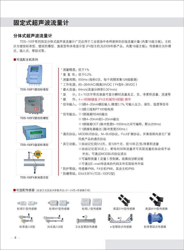 超聲波流量計 一、概 述 AK-TDS-100F型固定式超聲波流量計利用了低電壓、多脈沖時差原理,采用高精度和超穩(wěn)定的雙平衡信號差分發(fā)射、差分接收數(shù)字檢測技術來測量順流和逆流方向的聲波傳輸時