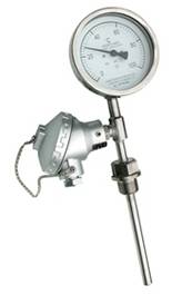遠傳雙金屬溫度計 一、應用 AK-WSS遠傳雙金屬溫度計采用雙金屬溫度計與熱電偶/熱電阻一體的方式,既滿足現場測溫需求,又滿足遠距離傳輸需求,可以直接測量各種過程中的-80-+500℃范圍內液