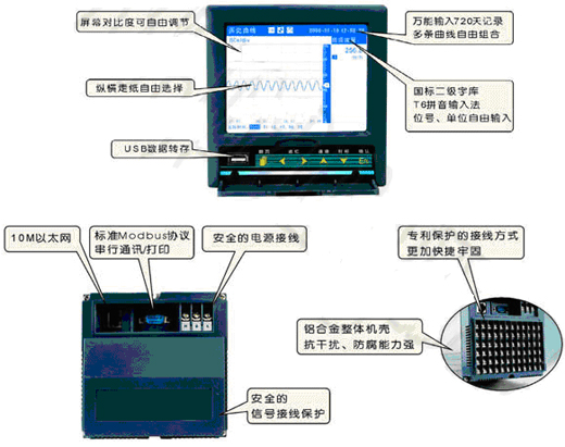 | AK-500R | 藍(lán)屏單色無(wú)紙記錄儀 | |||||||||||