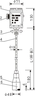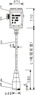 靜壓式液位變送器 結構類型 AK-LC纜式液位變送器 AK-LR桿式液位變送器 AK-LD直裝式液位變送器 AK-LC 外形尺寸 AK-LC纜式液位變送器 (普通形式連接) 1、變送器外殼 2、信號線纜接頭 3、傳感器電纜