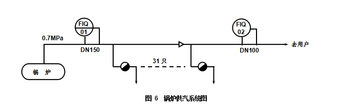 熱力公司懷疑蒸汽流量計不準,因為鍋爐房出口的流量計FIQ01穩定顯示2.5 t/h左右的流量,而用戶端流量計FIQ02顯示時有時無,流量zui大時也只有0.75 t/h